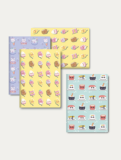 The maxi-notebooks combine high quality and irresistible designs with adorable characters: smiling jelly beans, mini-sushi and magical unicorns.