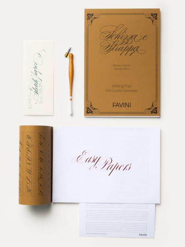 Calligraphy selects Favini: with our Schizza and Strappa Special Edition, made in collaboration with the great calligrapher Barbara Calzolari, the art of beautiful writing will have no more secrets.